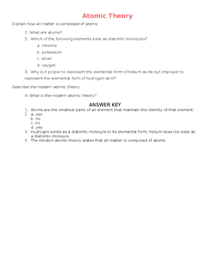 Modern Atomic Theory Key